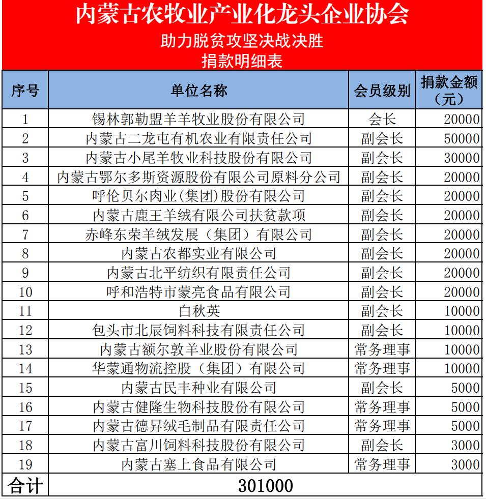 內(nèi)蒙古農(nóng)牧業(yè)產(chǎn)業(yè)化龍頭企業(yè)協(xié)會,作為自治區(qū)各級產(chǎn)業(yè)化重點(diǎn)龍頭企業(yè)的聯(lián)合體,始終堅(jiān)持以習(xí)近平總書記“三農(nóng)”思想為根本遵循,圍繞協(xié)會“溝通、服務(wù)、自律、發(fā)展”的工作宗旨,發(fā)揮協(xié)會的橋梁和紐帶作用,堅(jiān)持為企業(yè)服務(wù)、為行業(yè)服務(wù)、為政府服務(wù)、為農(nóng)牧民服務(wù)。協(xié)會在自治區(qū)農(nóng)牧廳的指導(dǎo)下,將繼續(xù)堅(jiān)持投身助力內(nèi)蒙古脫貧攻堅(jiān)工作中,貢獻(xiàn)自己的力量。