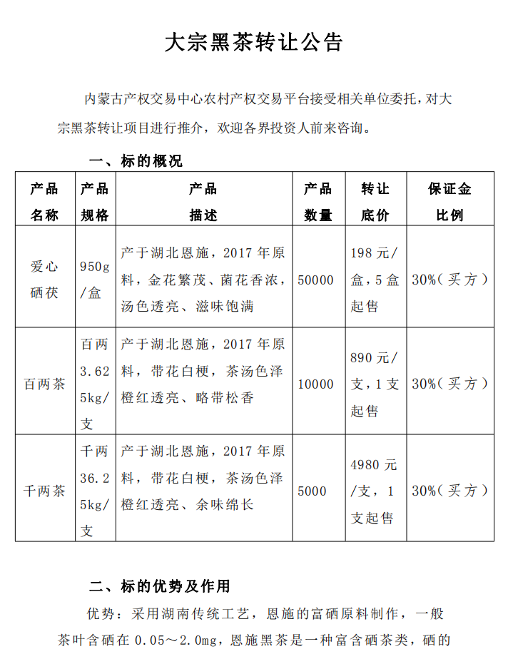 大宗黑茶轉(zhuǎn)讓公告
