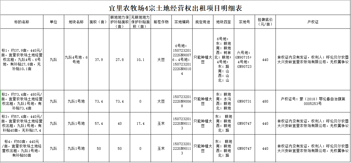 4宗耕地經(jīng)營(yíng)權(quán)出租項(xiàng)目