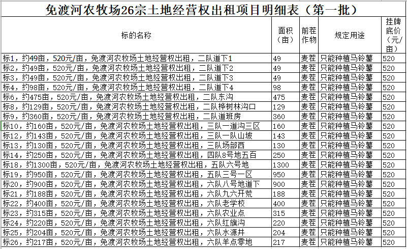 4.規(guī)定用途:第一批種植馬鈴薯,第二批種植甜菜,詳情以明細(xì)表為準(zhǔn)