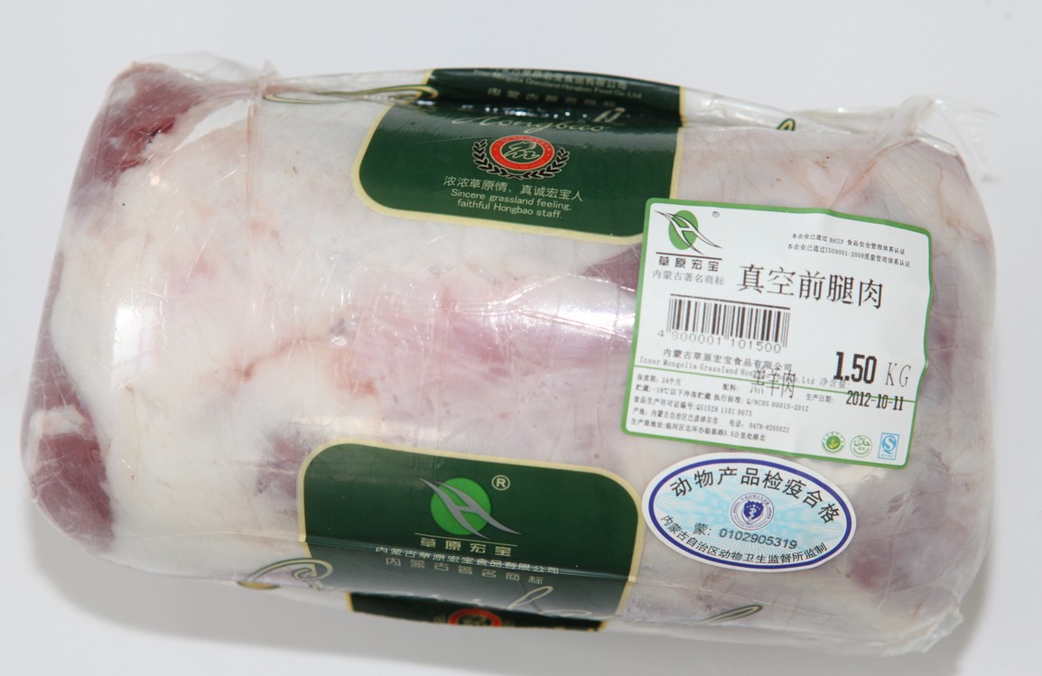 “草原宏寶”牌羊肉系列產(chǎn)品,從牧場養(yǎng)殖、屠宰分割到儲運(yùn)物流、商品貿(mào)易全產(chǎn)業(yè)鏈、全過程參照國家《良好農(nóng)業(yè)規(guī)范》及相關(guān)工廠、物流審核標(biāo)準(zhǔn)的要求實(shí)施可追溯控制生產(chǎn),確保安全無污染。所生產(chǎn)的原料全部選用牧場的優(yōu)質(zhì)羔羊,采用伊斯蘭教屠宰方式進(jìn)行吊宰,經(jīng)冷卻排酸、精細(xì)分割修選加工而成,被國家農(nóng)業(yè)部農(nóng)產(chǎn)品質(zhì)量安全中心認(rèn)證為“無公害食品”。