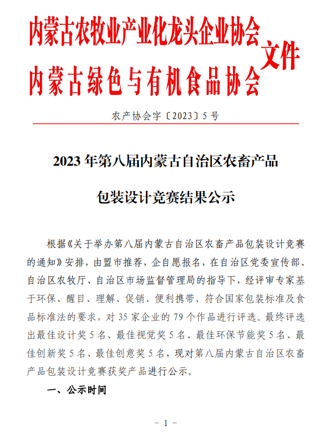 2023年第八屆內(nèi)蒙古自治區(qū)農(nóng)畜產(chǎn)品包裝設計競賽結果公示
