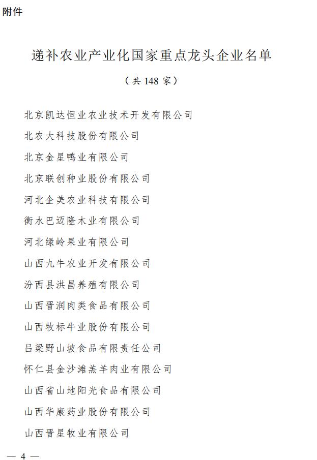 附件:新遞補(bǔ)的農(nóng)業(yè)產(chǎn)業(yè)化國家重點(diǎn)龍頭企業(yè)名單(共148 家)